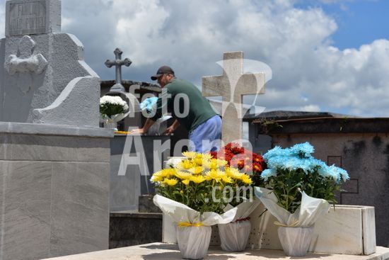 2833781 Imagens de pessoas realizando limpeza de jazigos e túmulos no Cemitério Público Municipal de Caxias do Sul, em preparação para as homenagens do Dia de Finados. O Cemitério Público Municipal de Caxias do Sul foi inaugurado em maio de 1901, quando o Estado cedeu ao município de Caxias do Sul uma área de 42.196 m². Antes dessa data os sepultamentos eram realizados no "antigo cemitério", situado entre as ruas Bento Gonçalves e Moreira César. O primeiro sepultamento neste cemitério foi o de Abramo Pezzi, no dia 6 de maio de 1903. Atualmente encontram-se sepultados aproximadamente 140 mil corpos, distribuídos em 5.200 lotes e 8.300 gavetas. Caxias do Sul, RS (01).