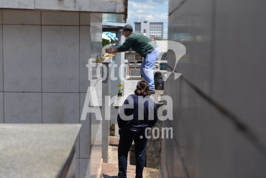 2833788 Imagens de pessoas realizando limpeza de jazigos e túmulos no Cemitério Público Municipal de Caxias do Sul, em preparação para as homenagens do Dia de Finados. O Cemitério Público Municipal de Caxias do Sul foi inaugurado em maio de 1901, quando o Estado cedeu ao município de Caxias do Sul uma área de 42.196 m². Antes dessa data os sepultamentos eram realizados no "antigo cemitério", situado entre as ruas Bento Gonçalves e Moreira César. O primeiro sepultamento neste cemitério foi o de Abramo Pezzi, no dia 6 de maio de 1903. Atualmente encontram-se sepultados aproximadamente 140 mil corpos, distribuídos em 5.200 lotes e 8.300 gavetas. Caxias do Sul, RS (01).
