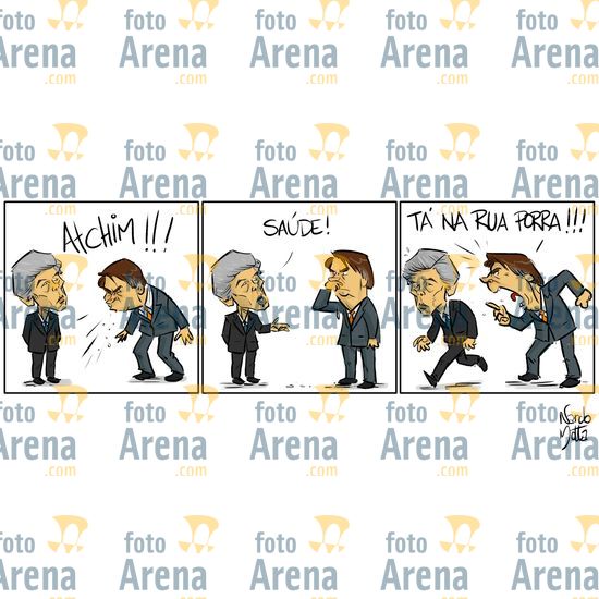 NAN2510304238 NANDO MOTTA, EPISÓDIOS SOCIAIS E POLÍTICOS, REDES SOCIAIS, 15.05.2020.Saúde.Representação de Nelson Teich e Jair Bolsonaro.- Atchim!!!- Saúde!- Tá na rua porra!!!