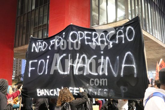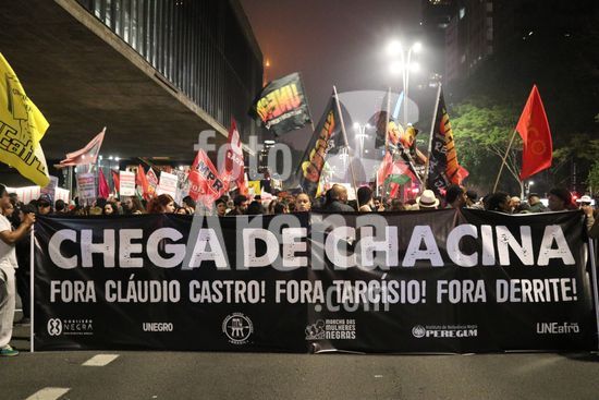 2833699 Entedidades do movimento negro e movimentos sociais fizeram ato contra contra o governo do Rio e operação mais letal do Estado que deixou 121 mortos. Av. Paulista.
