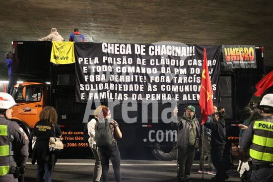 2833634 Manifestantes de movimentos sociais protestam em frente ao MASP nesta sexta, (31), contra a violência policial e o massacre na Zona Norte do Rio de Janeiro. O ato cobrou a responsabilização do governador Cláudio Castro e o fim das chacinas estatais. A operação, ocorrida em 28 de outubro, deixou mais de 120 mortos e é considerada a mais letal da história do país.