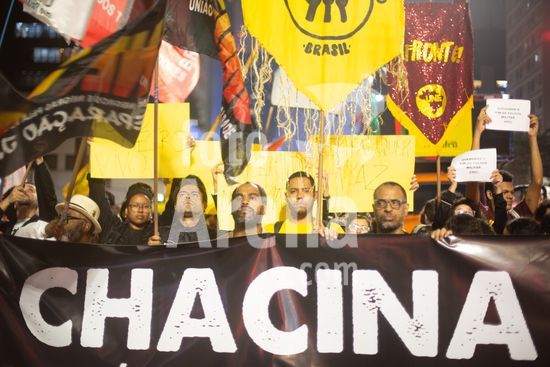 2833696 Entedidades do movimento negro e movimentos sociais fizeram ato contra contra o governo do Rio e operação mais letal do Estado que deixou 121 mortos. Av. Paulista.
