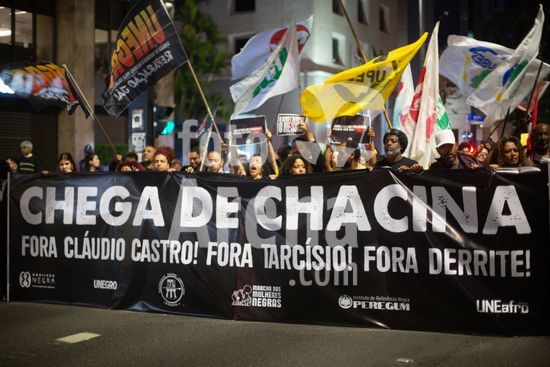 2833649 Manifestantes de movimentos sociais protestam em frente ao MASP nesta sexta, (31), contra a violência policial e o massacre na Zona Norte do Rio de Janeiro. O ato cobrou a responsabilização do governador Cláudio Castro e o fim das chacinas estatais. A operação, ocorrida em 28 de outubro, deixou mais de 120 mortos e é considerada a mais letal da história do país.
