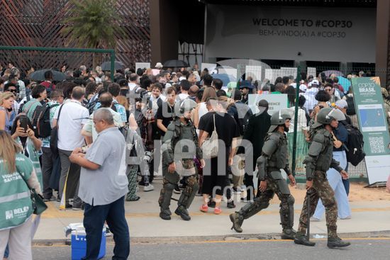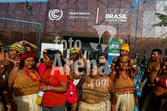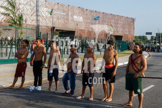2842728 Indígenas Munduruku bloqueiam entrada da Blue Zone em protesto durante o quinto dia da COP 30, realizada na cidade de Belém, capital paraense. Exército precisou intervir para conter manifestantes.