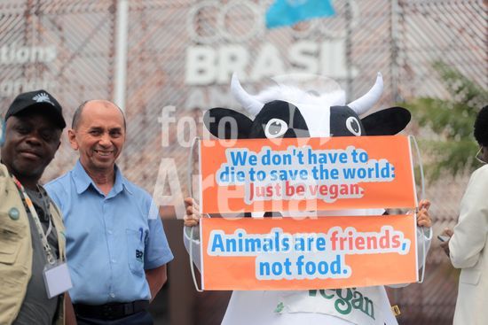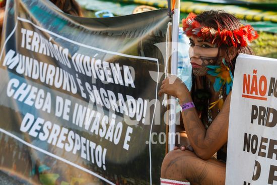 2842753 Indígenas da etnia Munduruku protestam contra o garimpo ilegal em frente à Blue Zone na COP 30 em Belém no Pará e impedem a entrada de participantes.