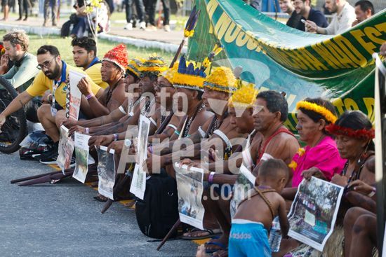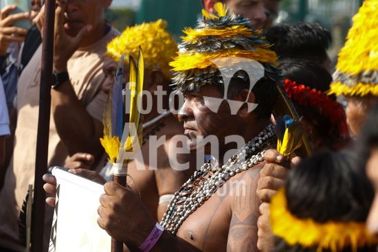 2842759 Indígenas da etnia Munduruku protestam contra o garimpo ilegal em frente à Blue Zone na COP 30 em Belém no Pará e impedem a entrada de participantes.