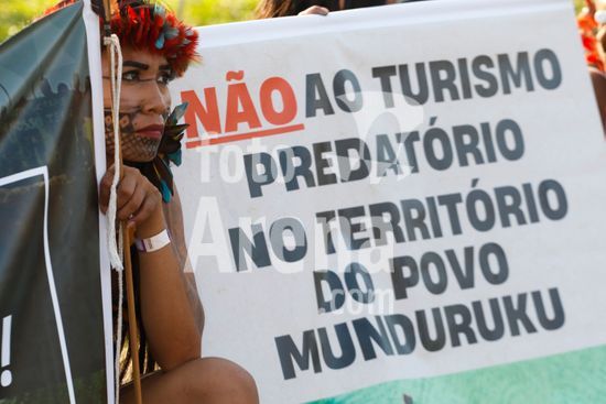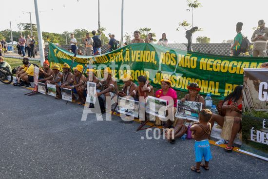 2842774 Indígenas da etnia Munduruku protestam contra o garimpo ilegal em frente à Blue Zone na COP 30 em Belém no Pará e impedem a entrada de participantes.