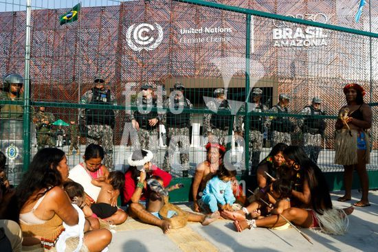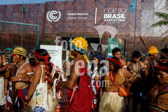 2842744 Indígenas Munduruku bloqueiam entrada da Blue Zone em protesto durante o quinto dia da COP 30, realizada na cidade de Belém, capital paraense. Exército precisou intervir para conter manifestantes.