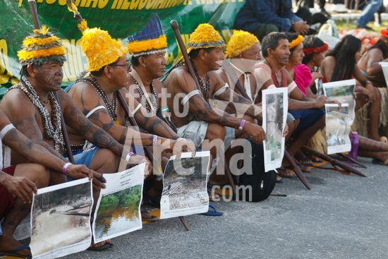 2842763 Indígenas da etnia Munduruku protestam contra o garimpo ilegal em frente à Blue Zone na COP 30 em Belém no Pará e impedem a entrada de participantes.