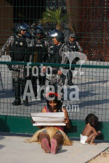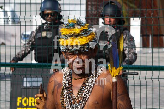 2842721 Indígenas Munduruku bloqueiam entrada da Blue Zone em protesto durante o quinto dia da COP 30, realizada na cidade de Belém, capital paraense. Exército precisou intervir para conter manifestantes.
