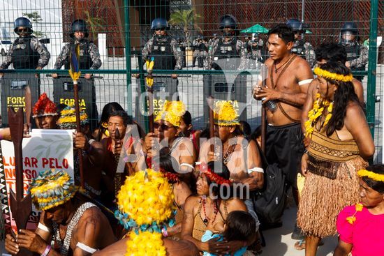 2842723 Indígenas Munduruku bloqueiam entrada da Blue Zone em protesto durante o quinto dia da COP 30, realizada na cidade de Belém, capital paraense. Exército precisou intervir para conter manifestantes.