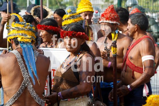 2842770 Indígenas da etnia Munduruku protestam contra o garimpo ilegal em frente à Blue Zone na COP 30 em Belém no Pará e impedem a entrada de participantes.
