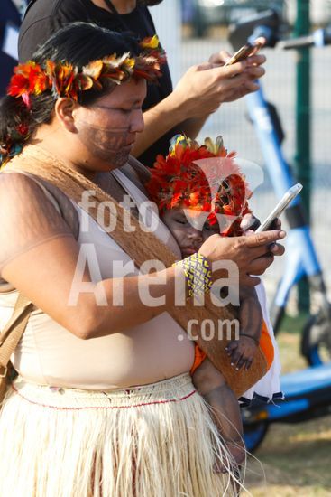 2842572 Representantes dos povos originários durante apresentação do grupo Massive Attack em São Paulo na noite desta quinta (13) em única apresentação no país realizada no Espaço Unimed. O show segue a 'ACT1.5', um guia de boas práticas para a realização de espetáculos sustentáveis e tem a colaboração da campanha 'A Resposta Somos Nós', movimento que busca viabilizar propostas dos povos originários ante os desafios climáticos.