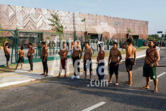 2842718 Indígenas Munduruku bloqueiam entrada da Blue Zone em protesto durante o quinto dia da COP 30, realizada na cidade de Belém, capital paraense. Exército precisou intervir para conter manifestantes.
