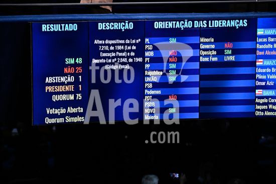 2860162 Foto, Painel do Senado com o resultado da votação. Nesta quarta (17) o Senado vota PL da Dosimetria para apenas aos condenados pelos atos golpistas de 8 de janeiro de 2023.