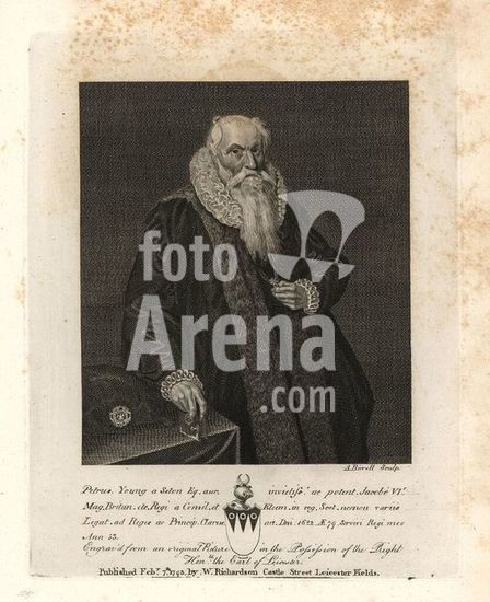 alb2120675 Sir Peter Young, tutor to King James VI, 1544-1628. Engraved by A. Birrell from an original picture in the collection of the Earl of Leicester. Copperplate engraving from Richardson's "Portraits illustrating Granger's Biographical History of England," London, 1792–1812. Published by William Richardson, printseller, London. James Granger (1723–1776) was an English clergyman, biographer, and print collector.