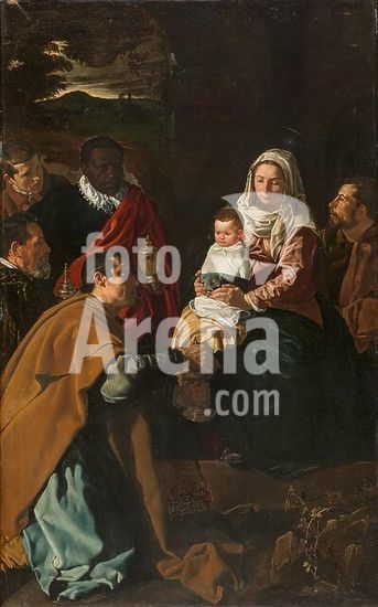 alb2068549 Diego Rodríguez de Silva y Velázquez / 'Adoration of the Magi', 1619, Spanish School, Oil on canvas, 203 cm x 125 cm, P01166. Museum: MUSEO DEL PRADO, MADRID, SPAIN. SAINT JOSEPH. INFANT JESUS. VIRGIN MARY.