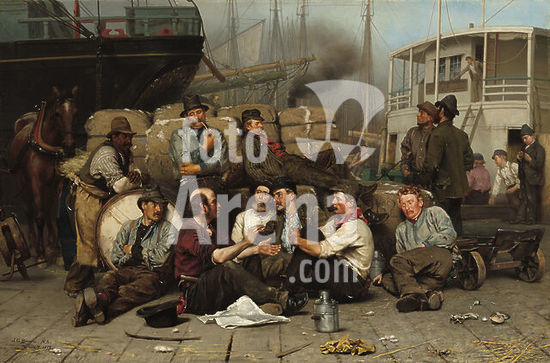 alb3704592 The Longshoremen's Noon. Dated: 1879. Dimensions: overall: 84 × 127.3 cm (33 1/16 × 50 1/8 in.) framed: 109.9 × 153 × 9.5 cm (43 1/4 × 60 1/4 × 3 3/4 in.). Medium: oil on canvas. Museum: National Gallery of Art, Washington DC. Author: John George Brown.