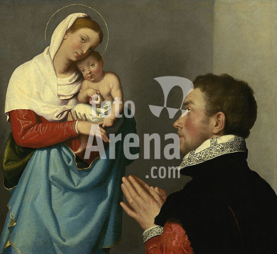 alb3722761 A Gentleman in Adoration before the Madonna. Dated: c. 1560. Dimensions: overall: 59.7 x 64.8 cm (23 1/2 x 25 1/2 in.) framed: 80 x 85.4 x 7 cm (31 1/2 x 33 5/8 x 2 3/4 in.). Medium: oil on canvas. Museum: National Gallery of Art, Washington DC. Author: Giovanni Battista Moroni.