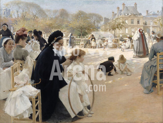 alb3891028 Pariisin Luxembourgin puistossa / The Luxembourg Gardens, Paris. Date/Period: 1887. Painting. Oil on canvas. Height: 141.5 cm (55.7 in); Width: 186 cm (73.2 in). Author: Albert Edelfelt.