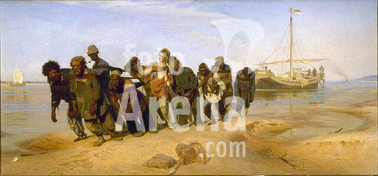 alb3900842 Bargehaulers on the Volga. Date/Period: 1870 - 1873. Painting. Oil on canvas. Height: 131.5 cm (51.7 in); Width: 281 cm (110.6 in). Author: Ilya Repin.