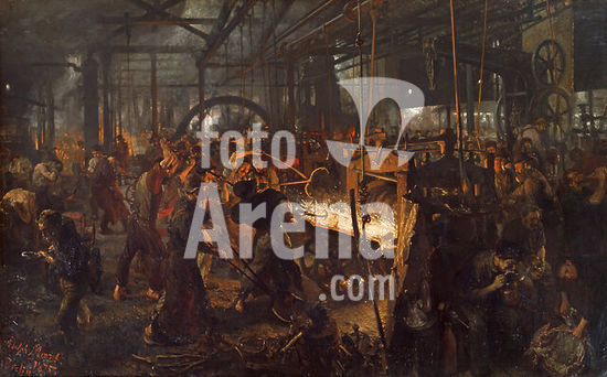 alb3904159 Eisenwalzwerk / The Iron Rolling Mill (Modern Cyclopes). Date/Period: 1875. Painting. Oil on canvas. Height: 158 cm (62.2 in); Width: 254 cm (100 in). Author: ADOLPH VON MENZEL.