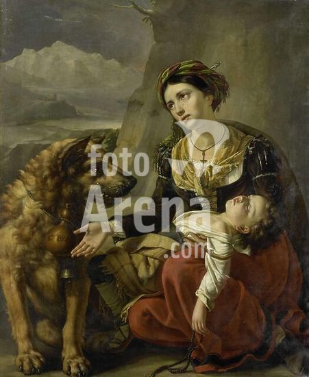 alb4101816 A Saint Bernard Dog Comes to the Aid of a lost Woman with a sick Child. Dating: 1827. Measurements: h 136 cm × w 111 cm × t 2.5 cm; d 11 cm. Museum: Rijksmuseum, Amsterdam. Author: Charles Picqué.