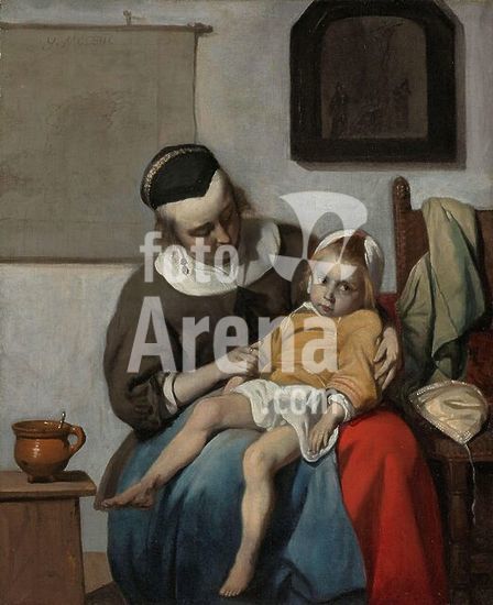 alb4103527 The Sick Child. Het zieke kind. Dating: c. 1664 - c. 1666. Measurements: h 32.2 cm × w 27.2 cm; h 50.5 cm × w 56 cm × t 7 cm. Museum: Rijksmuseum, Amsterdam. Author: Gabriël Metsu (mentioned on object).