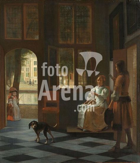alb4105646 Man Handing a Letter to a Woman in the Entrance Hall of a House. Het aanreiken van een brief in een voorhuis. Dating: 1670. Measurements: h 68 cm × w 59 cm. Museum: Rijksmuseum, Amsterdam. Author: PIETER DE HOOCH.