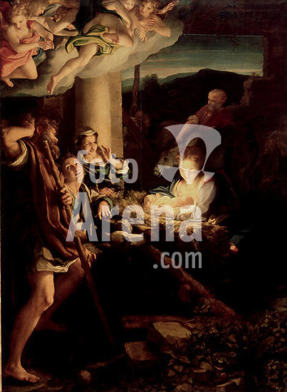 alb3894904 The Holy Night. Date/Period: 1522 - 1530. Painting. Oil on panel. Height: 2,560 mm (100.78 in); Width: 1,880 mm (74.01 in). Author: CORREGGIO.