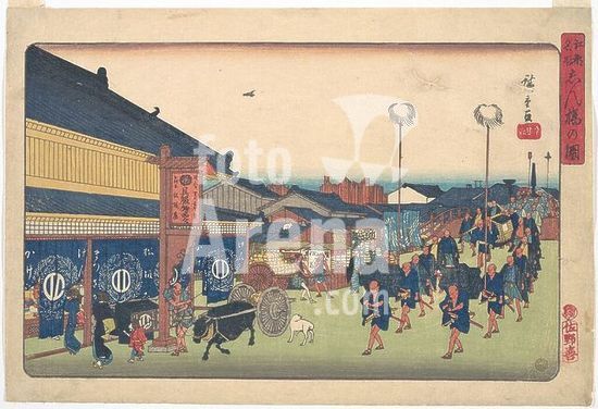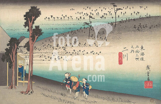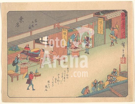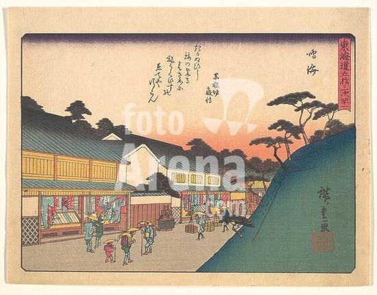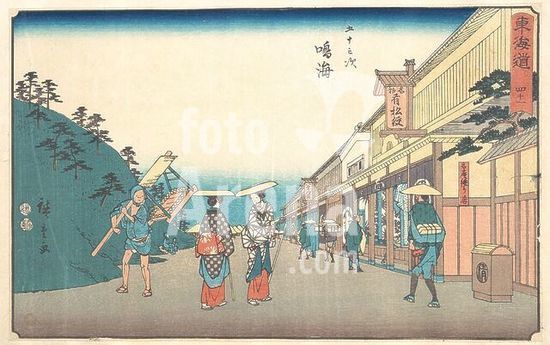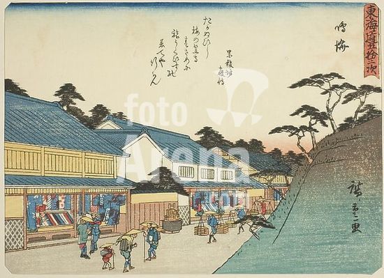 alb4153690 Narumi, from the series "Fifty-three Stations of the Tokaido (Tokaido gojusan tsugi)," also known as the Tokaido with Poem (Kyoka iri Tokaido). Utagawa Hiroshige ?? ??; Japanese, 1797-1858. Date: 1832-1847. Dimensions: 16.7 × 22.8 cm (6 9/16 × 8 15/16 in.). Color woodblock print; chuban. Origin: Japan. Museum: The Chicago Art Institute, USA.