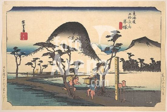 alb3609228 Hiratsuka, Nawate Do. Artist: Utagawa Hiroshige (Japanese, Tokyo (Edo) 1797-1858 Tokyo (Edo)). Culture: Japan. Dimensions: H. 9 15/16 in. (25.2 cm); W. 14 13/16 in. (37.6 cm). Date: ca. 1834. Museum: Metropolitan Museum of Art, New York, USA.
