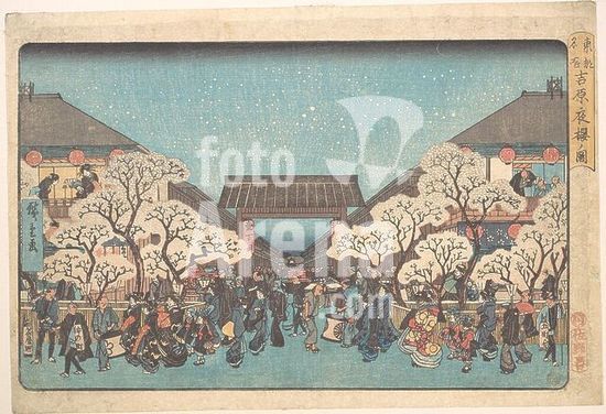 alb3619023 Yoshiwara Yo Zakura no Zu. Artist: Utagawa Hiroshige (Japanese, Tokyo (Edo) 1797-1858 Tokyo (Edo)). Culture: Japan. Dimensions: 9 13/16 x 14 3/8 in. (24.9 x 36.5 cm). Date: ca. 1841. Museum: Metropolitan Museum of Art, New York, USA.
