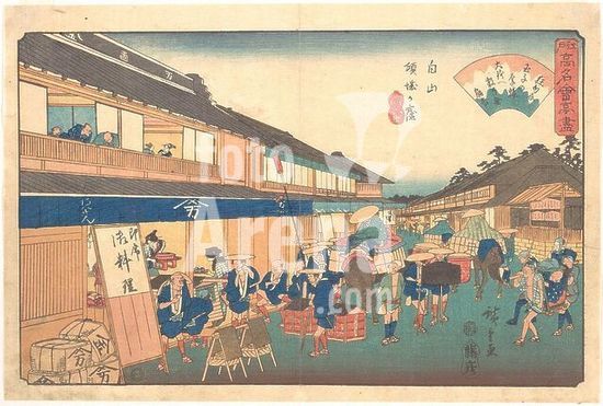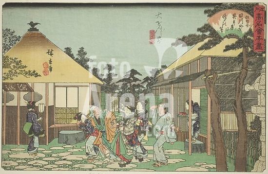 alb4153612 The Tagawaya Restaurant in Front of Daionji (Daionji mae, Tagawaya), from the series "Famous Restaurants of Edo (Edo komei kaitei zukushi)". Utagawa Hiroshige ?? ??; Japanese, 1797-1858. Date: 1833-1845. Dimensions: 22.2 x 34.9 cm (8 3/4 x 13 3/4 in.). Color woodblock print; oban. Origin: Japan. Museum: The Chicago Art Institute, USA.