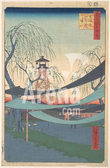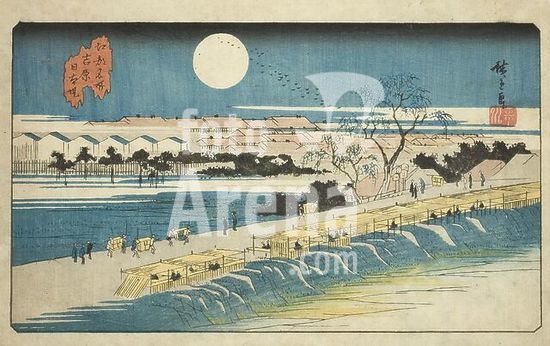 alb4153466 Nihon Embankment near the Yoshiwara (Yoshiwara Nihon-zutsumi), from the series "Famous Places in Edo (Koto meisho)". Utagawa Hiroshige ?? ??; Japanese, 1797-1858. Date: 1830-1843. Dimensions: 21.9 x 34.3 cm (8 5/8 x 13 1/2 in.). Color woodblock print; aiban. Origin: Japan. Museum: The Chicago Art Institute, USA.