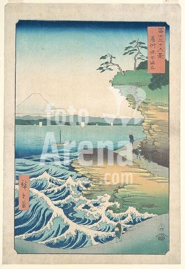alb3628269 Seashore at Hoda, Province of Awa. Artist: Utagawa Hiroshige (Japanese, Tokyo (Edo) 1797-1858 Tokyo (Edo)). Culture: Japan. Dimensions: 13 1/4 x 8 3/4 in. (33.7 x 22.2 cm). Date: 1858-59. Museum: Metropolitan Museum of Art, New York, USA.