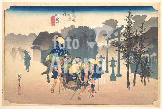 alb3644579 Mishima Asa-GiriMorning Mist. Artist: Utagawa Hiroshige (Japanese, Tokyo (Edo) 1797-1858 Tokyo (Edo)). Culture: Japan. Dimensions: 9 1/2 x 14 1/4 in. (24.1 x 36.2 cm). Date: 1797-1858. Museum: Metropolitan Museum of Art, New York, USA.