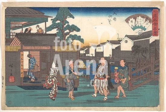 alb3647572 Ryogoku Yanagibashi (Umegawa)The Umegawa at Ryogoku Yanagibashi. Artist: Utagawa Hiroshige (Japanese, Tokyo (Edo) 1797-1858 Tokyo (Edo)). Culture: Japan. Dimensions: H. 9 7/16 in. (24 cm); W. 14 3/16 in. (36 cm). Date: ca. 1835-42. Museum: Metropolitan Museum of Art, New York, USA.
