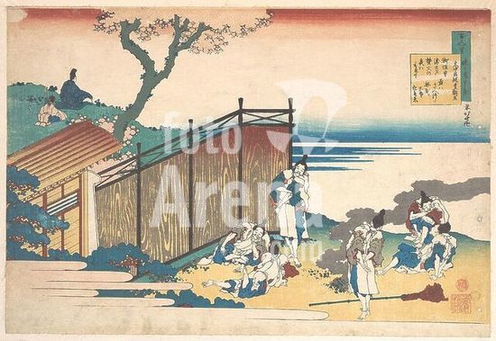 alb3648950 Poem by Onakatomi no Yoshinobu Ason, from the series One Hundred Poems Explained by the Nurse (Hyakunin isshu uba ga etoki). Artist: Katsushika Hokusai (Japanese, Tokyo (Edo) 1760-1849 Tokyo (Edo)). Culture: Japan. Dimensions: 10 x 14 1/8 in. (25.4 x 35.9 cm). Date: 1839. Museum: Metropolitan Museum of Art, New York, USA.