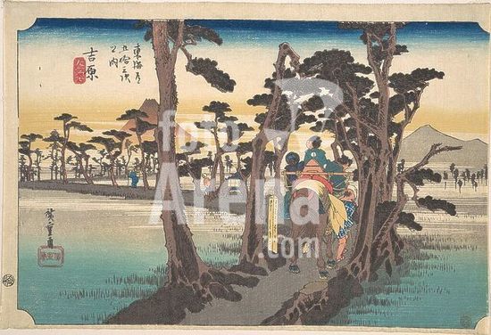 alb3671716 Yoshiwara, Hidari Fuji. Artist: Utagawa Hiroshige (Japanese, Tokyo (Edo) 1797-1858 Tokyo (Edo)). Culture: Japan. Dimensions: 9 15/32 x 14 in. (24.1 x 35.6 cm). Date: ca. 1834. Museum: Metropolitan Museum of Art, New York, USA.