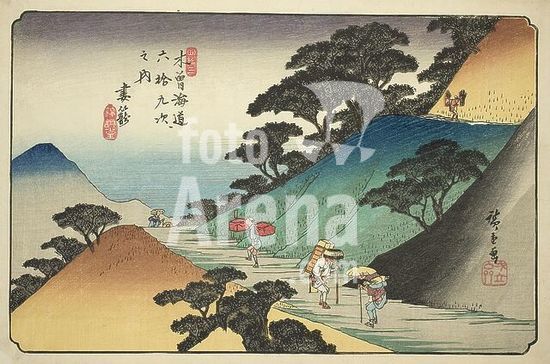 alb4153619 No. 43: Tsumagome, from the series "Sixty-nine Stations of the Kisokaido (Kisokaido rokujukyu tsugi no uchi)". Utagawa Hiroshige ?? ??; Japanese, 1797-1858. Date: 1830-1843. Dimensions: 26.0 x 37.8 cm (10 1/4 x 14 7/8 in.). Color woodblock print; oban. Origin: Japan. Museum: The Chicago Art Institute, USA.