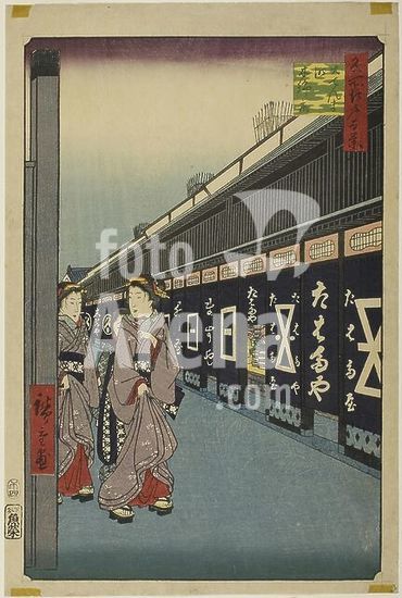 alb4158713 Shitaya Hirokoji, from the series "One Hundred Famous Views of Edo (Meisho Edo hyakkei)". Utagawa Hiroshige ?? ??; Japanese, 1797-1858. Date: 1856. Dimensions: 36.1 x 24.9 cm (14 3/16 x 9 13/16 in.). Color woodblock print; oban. Origin: Japan. Museum: The Chicago Art Institute, USA.