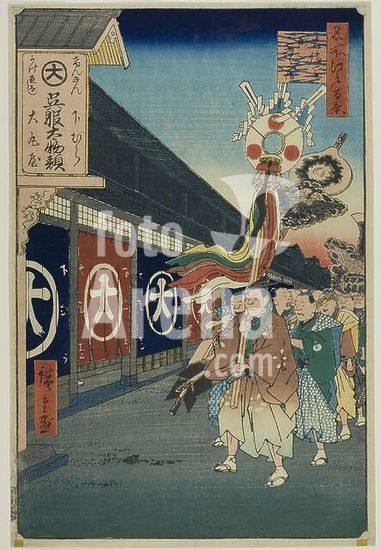 alb4154217 Silk-goods Lane, Odenma-cho (Odenma-cho gofukudana), from the series "One Hundred Famous Views of Edo (Meisho Edo hyakkei)". Utagawa Hiroshige ?? ??; Japanese, 1797-1858. Date: 1858. Dimensions: . Color woodblock print; oban. Origin: Japan. Museum: The Chicago Art Institute, USA.