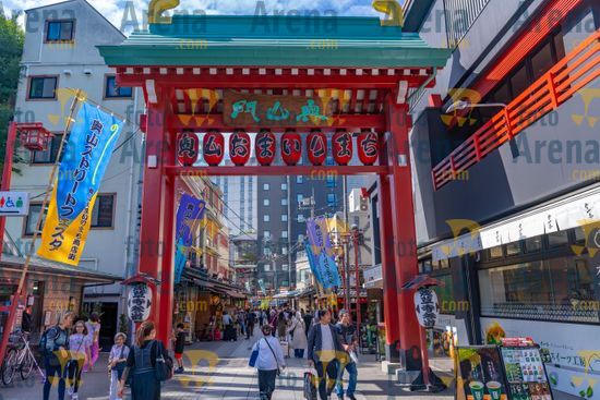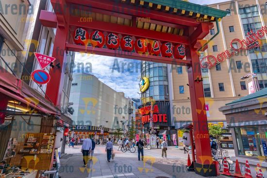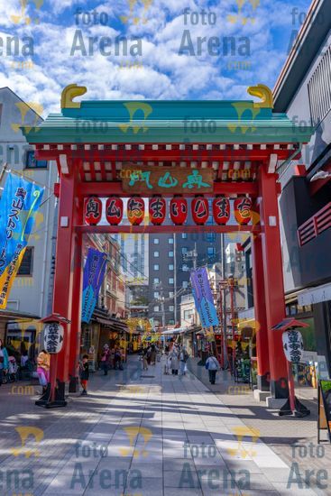844-37165 View of Torii gate, colourful shops and buildings in Asakusa, Taito City, Tokyo, Honshu, JapanLegenda da Fotoarena:View of Torii gate, colourful shops and buildings in Asakusa, Taito City, Tokyo, Honshu, Japan