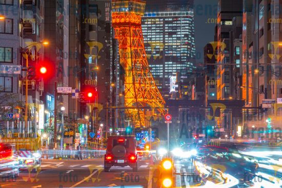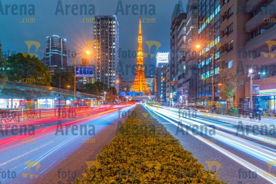 844-37370 View of Tokyo Tower, city street and trail lights at night, Minato City, Tokyo, Honshu, JapanLegenda da Fotoarena:View of Tokyo Tower, city street and trail lights at night, Minato City, Tokyo, Honshu, Japan