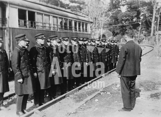 990_05_8-Pub-SC_9HR Tokyo, Japan: December 25, 1927 A squad of Japanese boys who the municipal street railways have put into uniforms and are trying out as street car conductors.