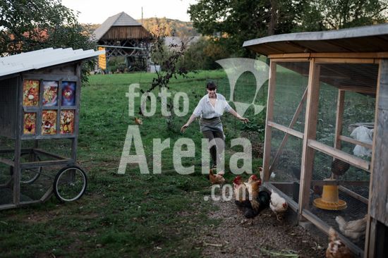 ny300925171112 Evita Mercedes Koletnik, a member of the staff, rounds up the chickens at Guesthouse Novak in the village of Dvor, Slovenia, in September 2025. This nation of just over two million people, nestled between Italy, Austria, Hungary and Croatia, has developed a world-class culinary reputation while retaining a culture of small guesthouses, home cooking and family farms. (Ciril Jazbec/The New York Times/Fotoarena)