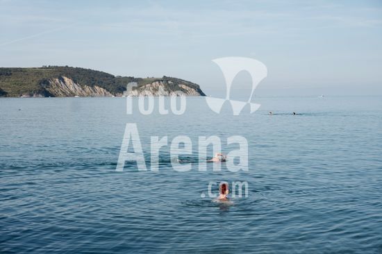 ny300925171912 Swimmers in the Adriatic Sea off Izola, on SloveniaÕs southern sliver of coast, in September 2025. This nation of just over two million people, nestled between Italy, Austria, Hungary and Croatia, has developed a world-class culinary reputation while retaining a culture of small guesthouses, home cooking and family farms. (Ciril Jazbec/The New York Times/Fotoarena)