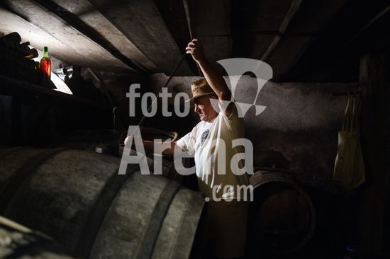 ny300925165211 Aci Urbajs checks the capacity of a wine barrel at his vineyard in Rifnik, in eastern Slovenia, in September 2025. Wines here are popular for their funky, natural flavors Ñ and no one in Slovenia makes funkier, more natural wines than Urbajs. (Ciril Jazbec/The New York Times/Fotoarena)