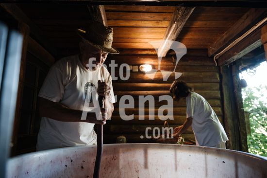 ny300925165712 Aci Urbajs demonstrates the hyperoxidation process, used during winemaking to prevent bitterness, among other things, at his vineyard in Rifnik, in eastern Slovenia, in September 2025. His daughter Tina Urbajs is in the background. (Ciril Jazbec/The New York Times/Fotoarena)